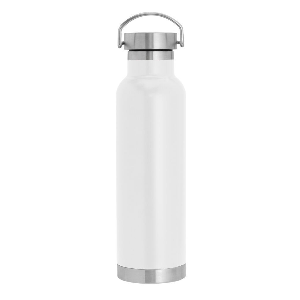 Termo modelo "Botella" de 750cc, en Acero inoxidable, tapa rosca. Presentación en estuche de cartón laminado plateado. IMPORTANTE Termo para líquidos calientes o fríos. No llenar con lácteos o bebidas gaseosas. • Tamaño: Ø7.8 x 29 cm • Colores:Plata (00) • Sugerencia: Serigrafía, Grabado Láser. • Capacidad: 750 cc • Presentación: Estuche de Cartón laminado plateado.