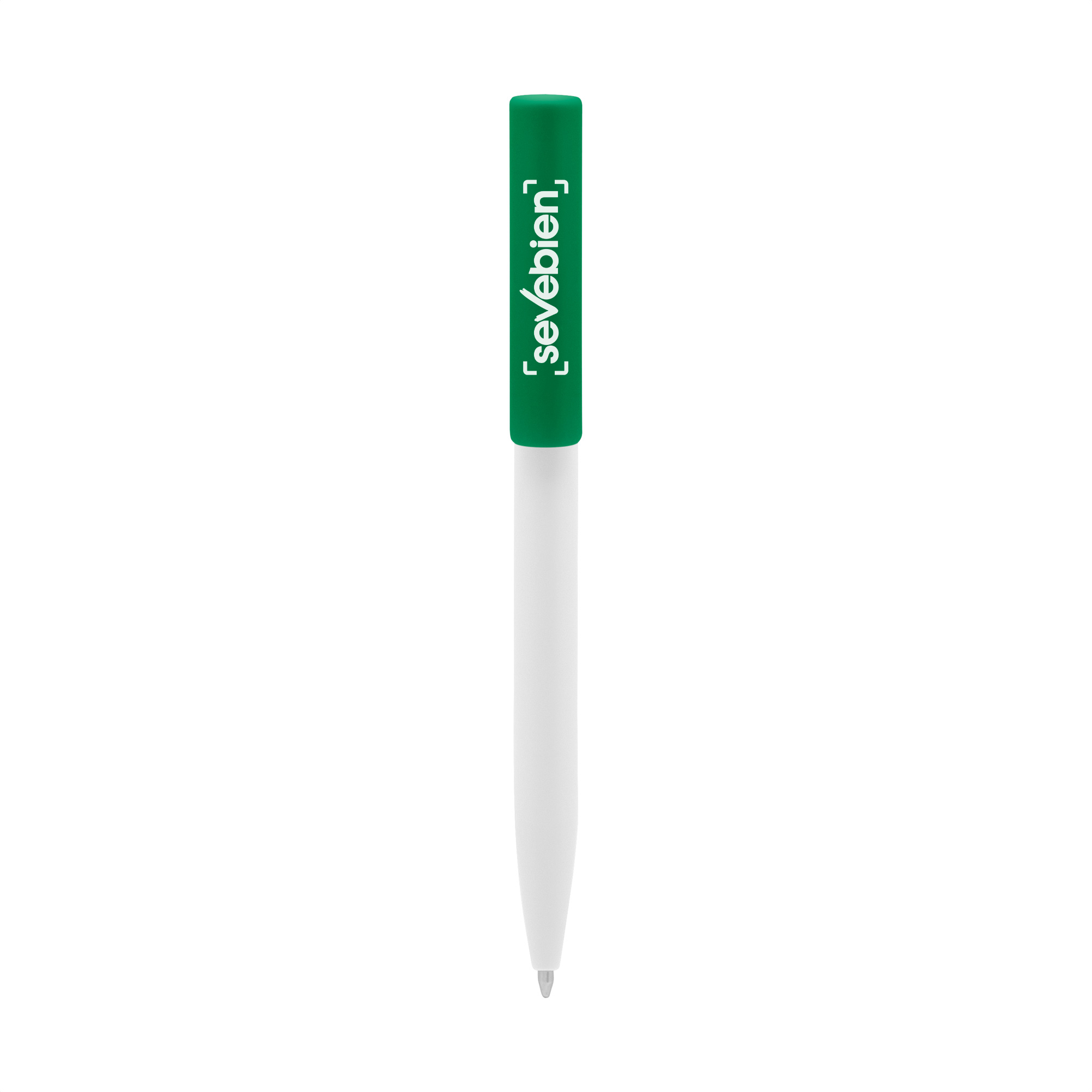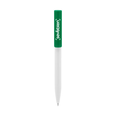 Fabricado en plástico resistente, este bolígrafo cuenta con un cuerpo blanco neutro, ideal para realzar el logotipo o eslogan de tu empresa. El clip en colores variados permite adaptar el producto a tu identidad visual o incluso crear versiones por área, campaña o departamento, aumentando el valor percibido de personalización.