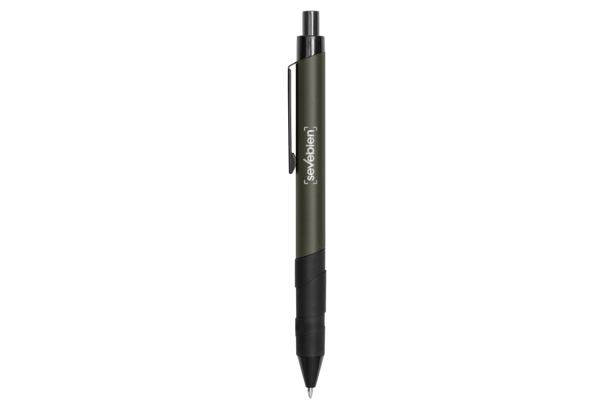Este BOLÍGRAFO «GREGOR» combina una estética profesional con detalles ergonómicos que mejoran la experiencia de escritura. El cuerpo metálico de color se complementa con un grip de goma negra, que ofrece un mejor agarre y comodidad durante su uso prolongado.