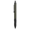 El diseño incluye clip metálico color negro, puntera y pulsador de plástico negro, y un sistema de apertura retráctil mediante pulsador. Su tinta negra fluida lo hace ideal para oficinas, eventos corporativos, ferias o kits promocionales.