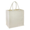 Este modelo cuenta con un tamaño aproximado de 39 x 39 x 19 cm, y manillas de 53 x 2.7 cm. Está fabricada en canvas de algodón natural y posee un práctico cierre de velcro en el interior para mayor seguridad. Es perfecta para llevar documentos, compras, productos promocionales o regalos corporativos.