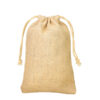 Bolsa de Yute tipo saco de 20 x 30 cm, sin recubrimiento laminado interior. Cuenta con asa-cordón retraíble de yute, en la parte superior de la bolsa.
