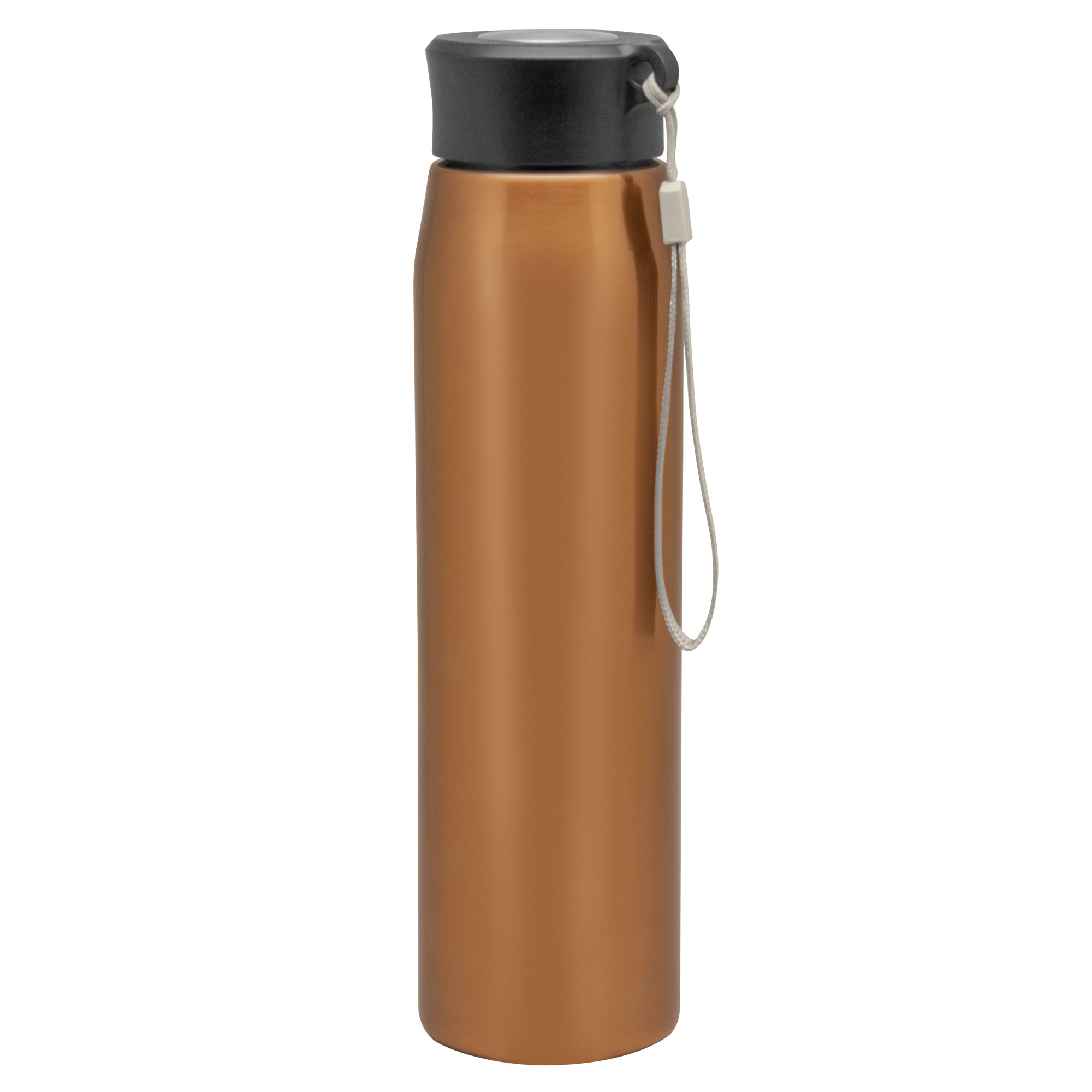 Diseñada para el uso diario, esta botella es ideal para llevar al trabajo, en la mochila, al gimnasio o durante actividades al aire libre. La tira gris facilita su transporte, y su estructura metálica asegura durabilidad y una imagen profesional.