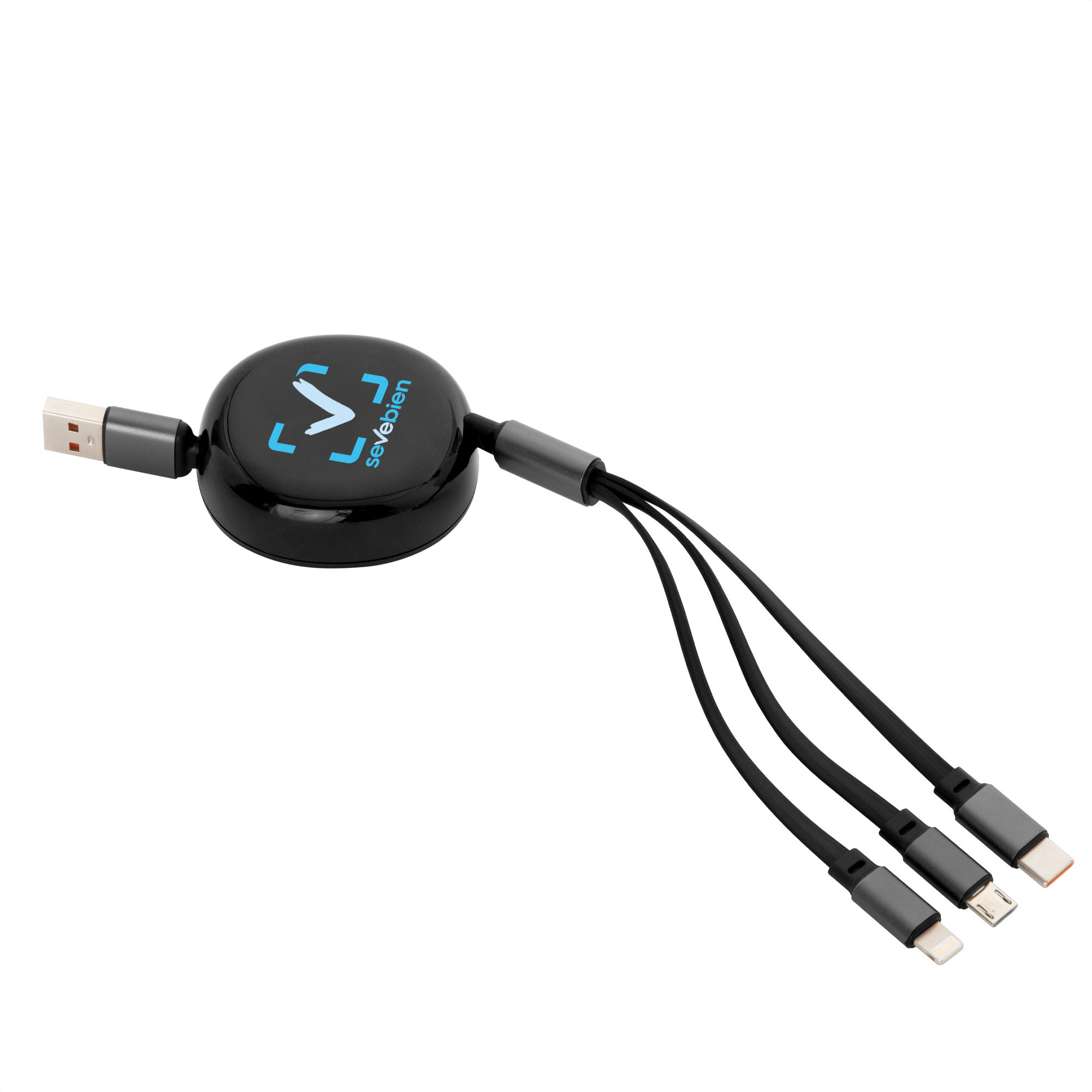 Cable retráctil de carga «JACK» – Lightning, USB-C y USB | Hasta 115 cm