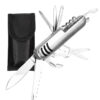 Con un tamaño cerrado de 9 x 2.5 x 1.8 cm, su portabilidad lo hace ideal para llevar en el bolsillo, mochila o vehículo. Cada una de sus herramientas está fabricada en acero inoxidable, lo que garantiza resistencia al desgaste, la corrosión y el uso prolongado. Entre las funciones más comunes se incluyen cuchillo, tijeras, destornillador, abrebotellas, lima y más.