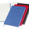 Cuaderno tamaño A5, con cubierta de cartón piedra forrada en tela lino de 2mm de espesor. Interior 80 hojas lineadas amarillas de 80gsm. Incluye banda separador de hojas al tono. Presentación individual en bolsa de polipropileno.
