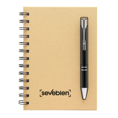 Este set incluye una libreta kraft con bolígrafo imantado y un elegante bolígrafo metálico negro (modelo BP295) que se adhiere a la tapa mediante un sistema de imanes. El resultado es una presentación funcional, innovadora y llamativa, ideal para entornos ejecutivos, educativos o creativos.