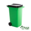 Fabricado en polipropileno (PP) de alta resistencia, este mini basurero tiene dimensiones de 15.5 x 8 x 10 cm y un peso liviano de solo 60 gramos. Cuenta con una tapa abatible y ruedas negras que refuerzan su estética realista. El color verde transmite una identidad ecológica y se asocia fácilmente con sostenibilidad y reciclaje.