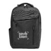 En el costado izquierdo, cuenta con un bolsillo lateral abierto, perfecto para botellas reutilizables o termos. Las correas ajustables y acolchadas, junto con el respaldo ergonómico también acolchado, aseguran un transporte cómodo y ventilado durante todo el día. La mochila también incluye una tira trasera para sujetarla fácilmente a la manija extensible de un equipaje de mano, ideal para viajes ejecutivos.