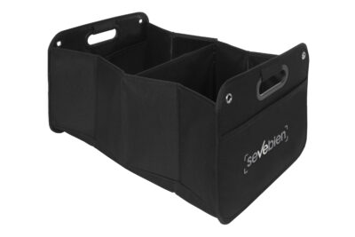Cuando no está en uso, el organizador se pliega fácilmente y se mantiene cerrado gracias a su banda elástica integrada. Además, cuenta con velcro en la base, lo que le permite adherirse a superficies, evitando deslizamientos durante el transporte o en el maletero del vehículo.