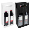 Con un tamaño de 17 x 36 x 10 cm aprox., permite transportar cómodamente dos botellas estándar de vino. Sus ventanas frontales de PVC transparente ofrecen una vista directa del contenido, lo que realza la presentación sin necesidad de abrir la bolsa.