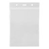 Diseñado para credenciales de hasta 9.2 x 13.2 cm, su presentación es vertical, con perforaciones que permiten sujetarlo fácilmente a lanyards, clips o yo-yos. Su superficie lisa y flexible ofrece protección frente a salpicaduras, rasguños y dobleces, conservando el estado de la credencial por más tiempo.