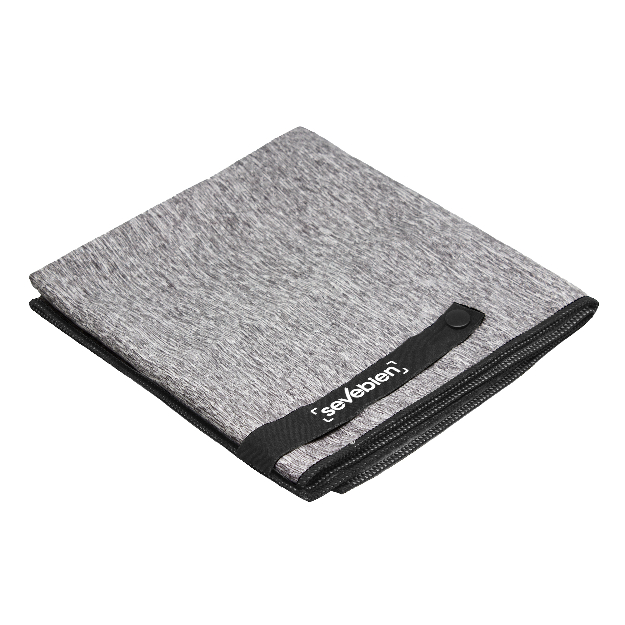 Cinta negra integrada para enrollar la toalla y facilitar el transporte